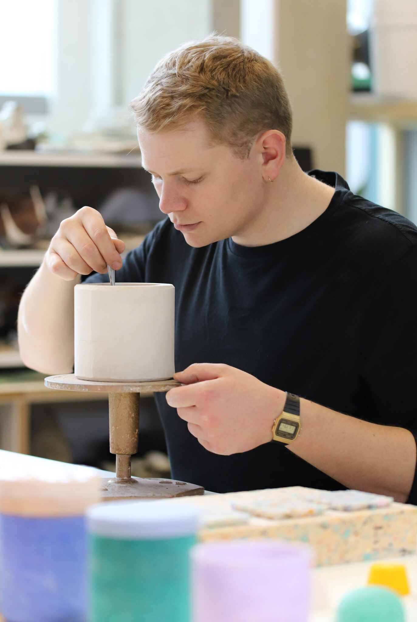 In 2011, he completed his BA (Hons) Contemporary Crafts degree at Falmouth University, and received an MA in Ceramics & Glass from the Royal College of Art in 2019. Kerley has exhibited nationally and internationally, and has been featured in publications such as Crafts Magazine and Sight Unseen. Awards have included the Gold Academic Award at Emerge 2018 and the Tiffany & Co. X Outset Studiomakers Prize, 2019.