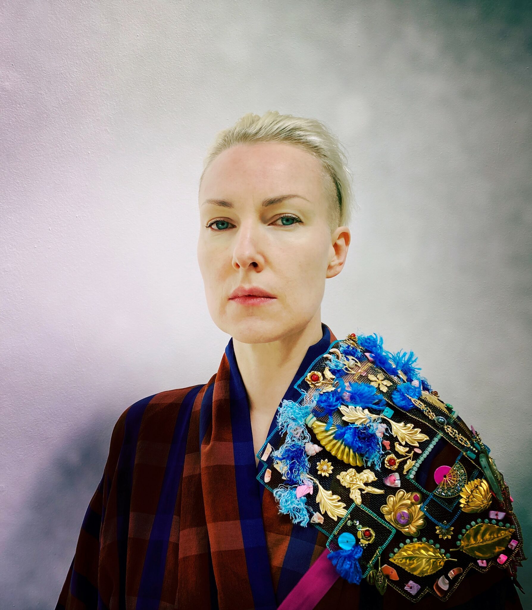 For her it is about the materials and how to organize them in a small area so that in the end, they communicate something. Her interest lies in decorating a space more than a body or a face. The whole process starts with a material she gains interest in. She connects with materials on an emotional level. Instead of drawing or sketching, just sculpting and letting the materials lead the way. She searches for her fabrics and finds objects in different spaces, whether it is in a piece of antique clothing, which she’ll completely take apart, or cheap plastic trinkets from the £1 shop.