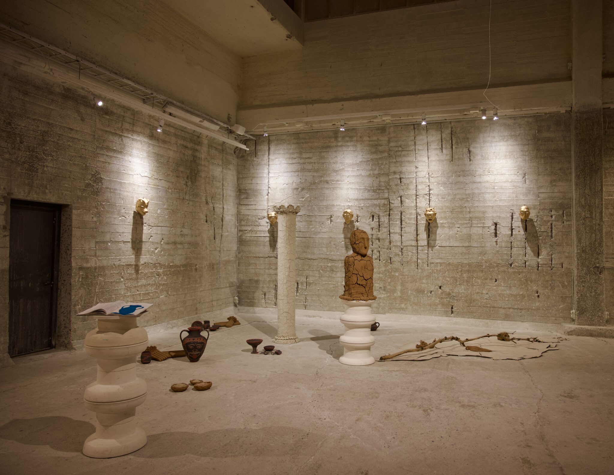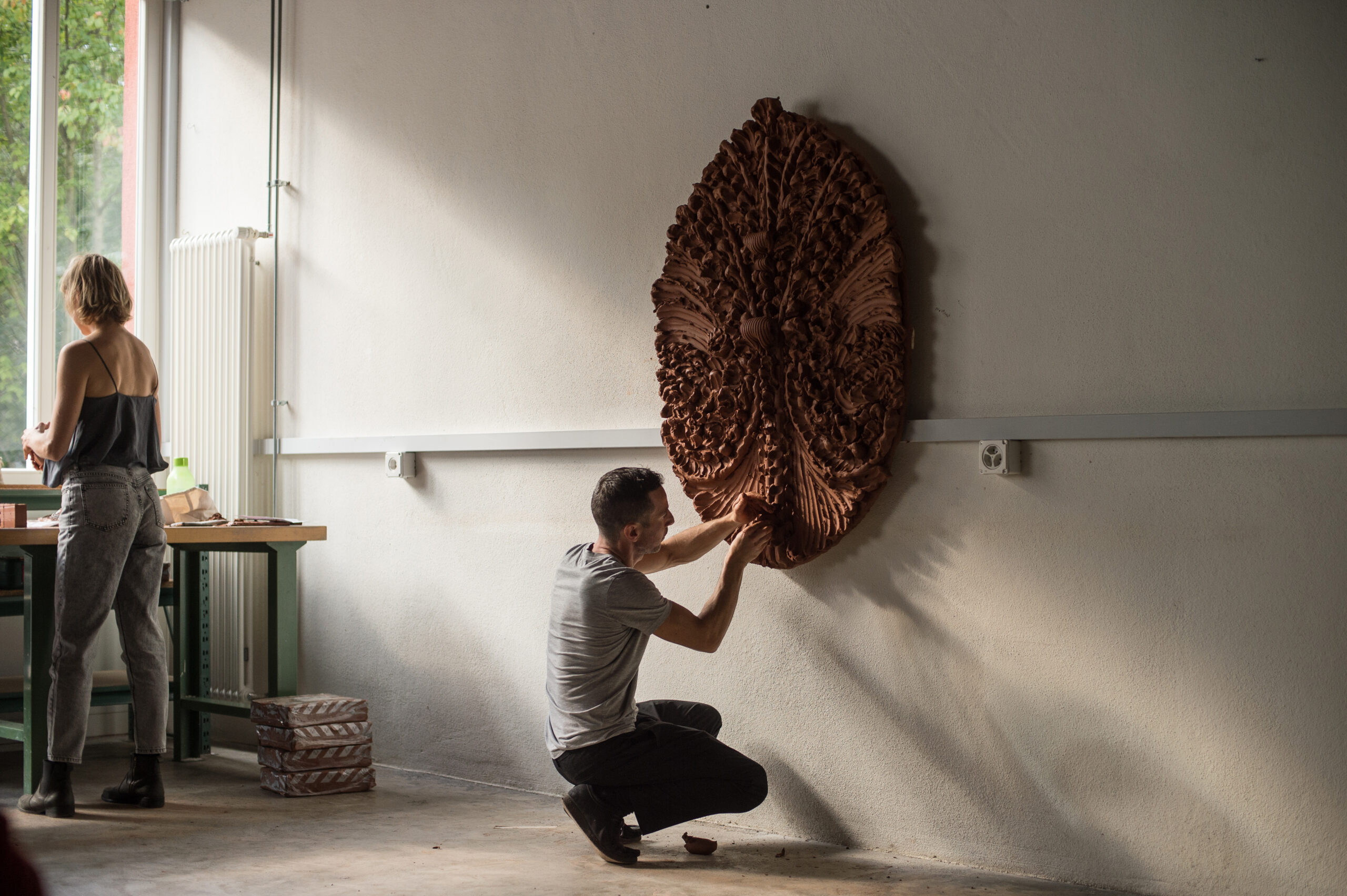 Intervening or integrating, Manuel Canu engages with specific architectural and social situations, creating places of poetic density where imagination and memories are bleeding into reality. In his installations, he creates fictitious architectural structures, where he predominantly uses unfired clay as a building material. The modelled clay is intentionally left to dry through the exhibition period, a process of mutation, shrinking, cracking and at times falling into pieces.