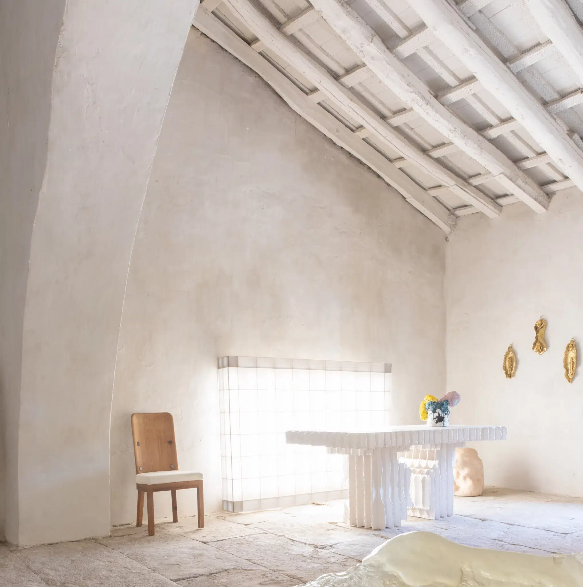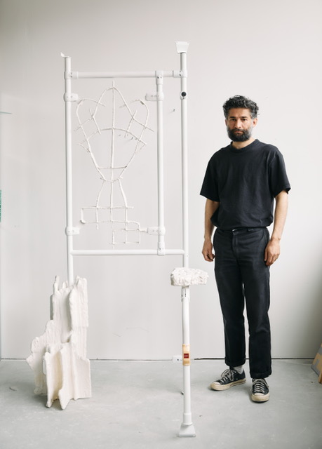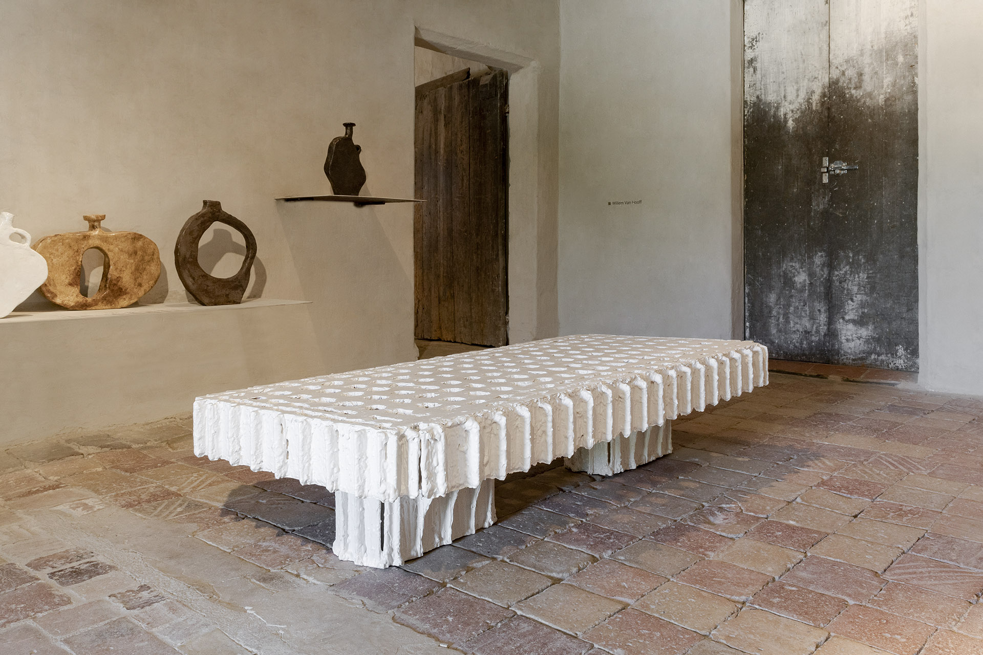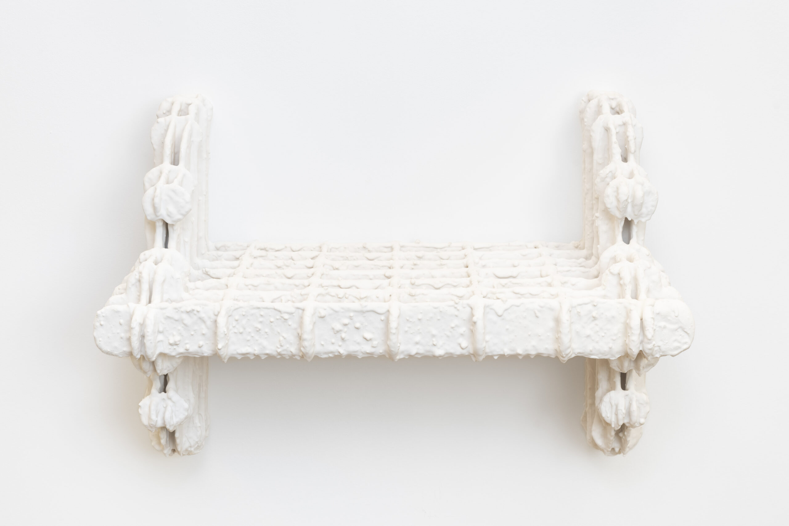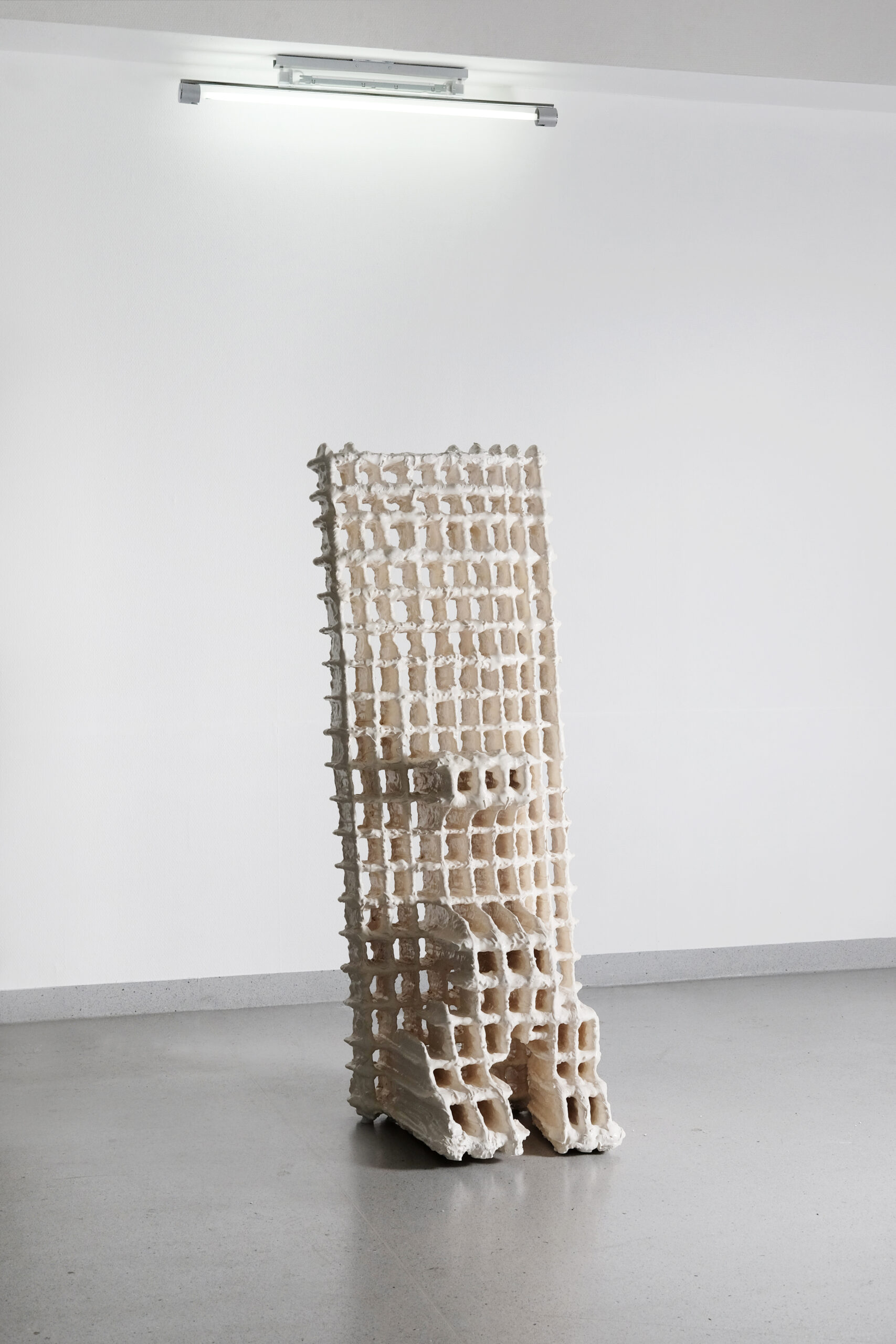 The new collection of works made exclusively for Side Gallery, is a continuation of Nebil Zaman’s previous works in plaster, exploring topics such as function, form, identity and visual culture. The scope of his creative process focuses on the combination of digital fabrication and handcraft methods. Zaman digitally draws or searches for 3D models that interest him. Once the designer is satisfied with the model, he sections the design in 2D, then laser cuts or CNC mills the 2D sections to create the parts, afterwards assembling the newly made pieces into a three dimensional object. The structural base then acts as a fixture to build up thin layers of regular plaster and wood glue, leaving the finished object with a smooth industrial finish. Zaman explores forms and different typologies of furniture, as well as imagining and creating new ones. Certain pieces have clear and specific functions, while others are more ambiguous and open to another possible purpose. The formal language and aesthetics of Zaman’s designs stem from a fascination with ancient civilizations, archaeological encounters, science fiction and futuristic visions.